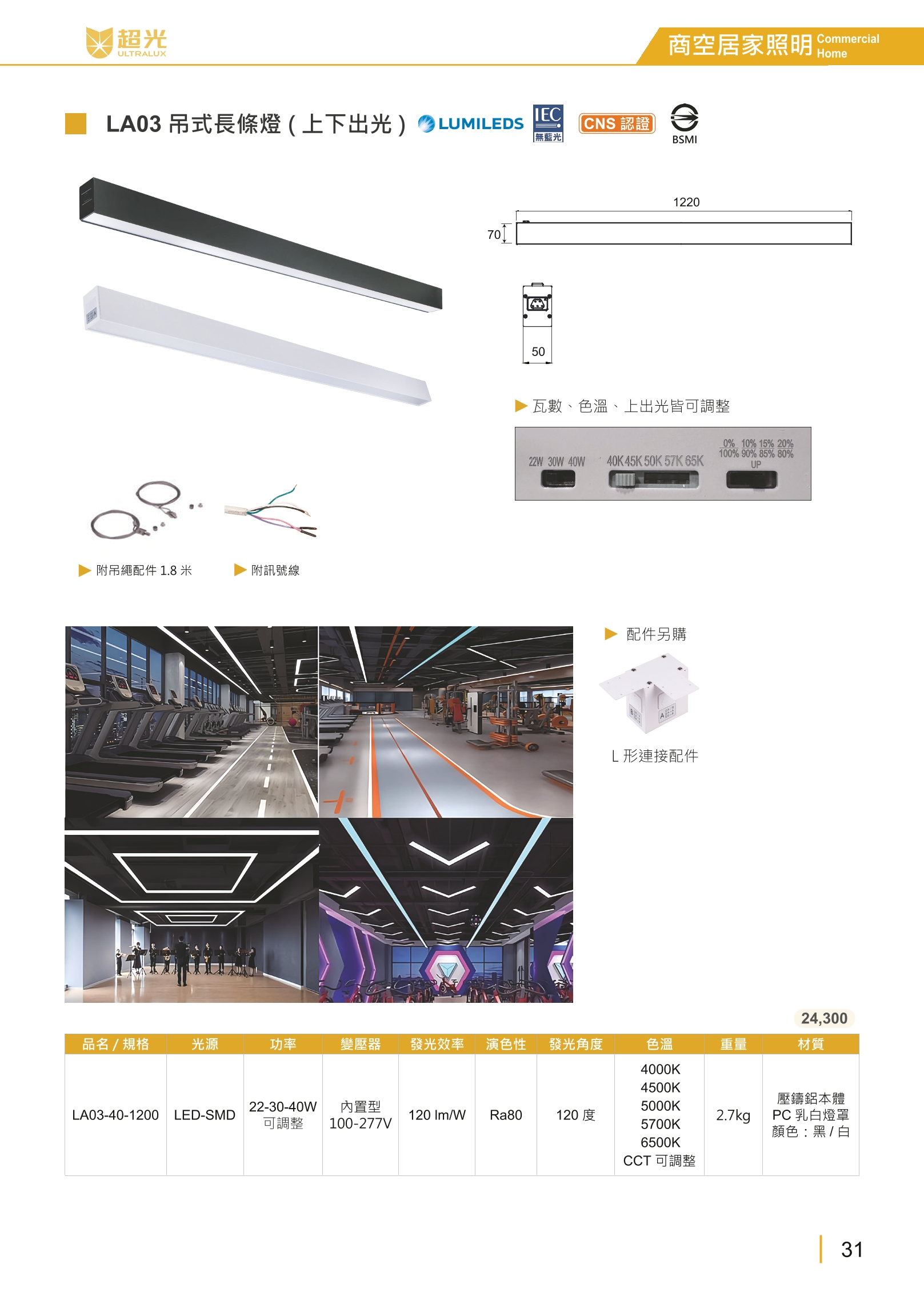 LA03五色可調長條燈(上下出光)黑/白