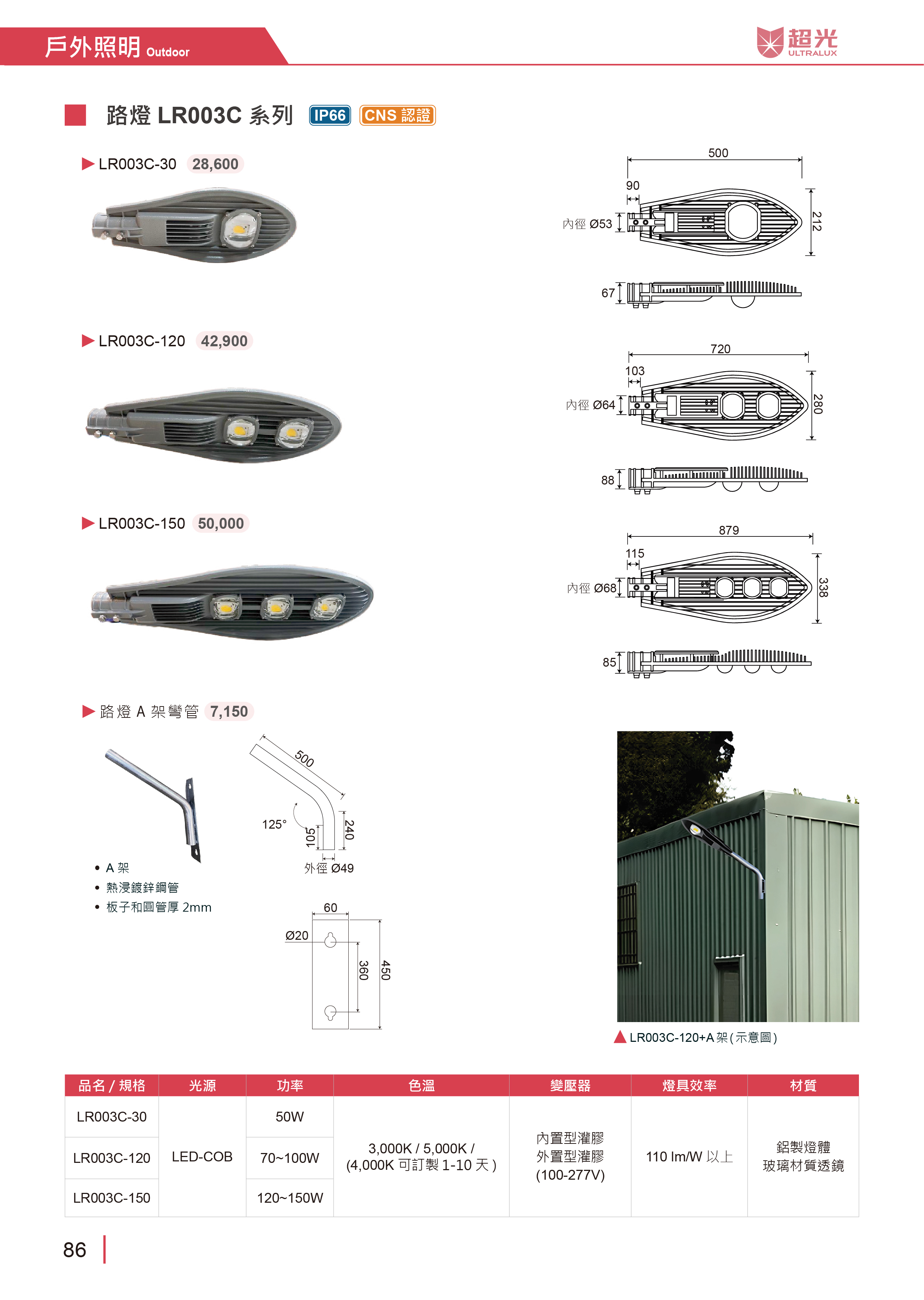 ▶【一體成型結構】鋁壓鑄燈體搭配玻璃材質透鏡,具 IP66 防水防塵與 CNS 認證,兼具耐候性與光效穩定性。