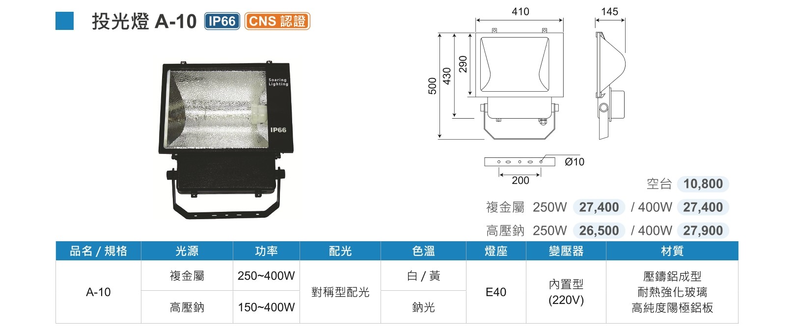A-10高壓鈉/複金屬投光燈